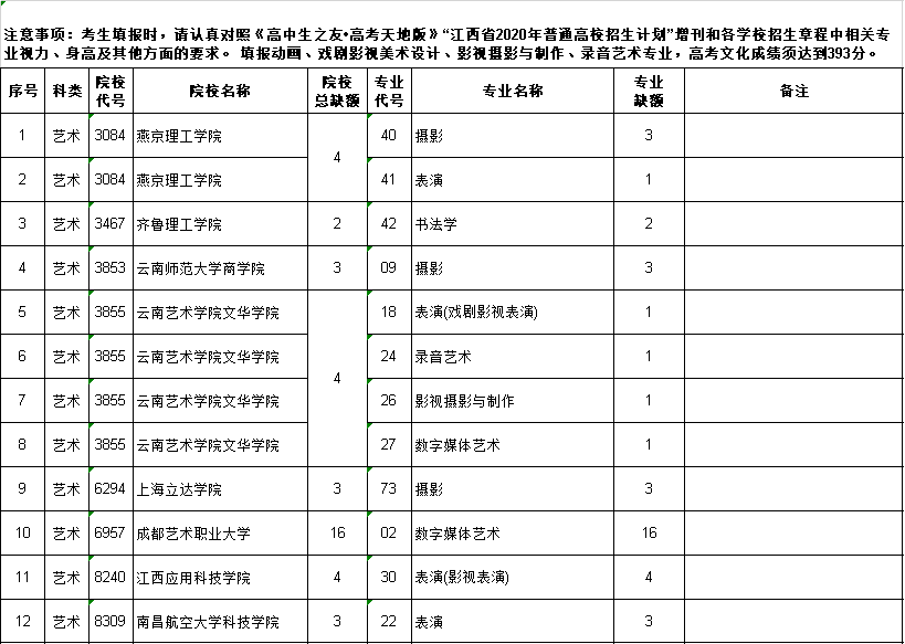 7、考生填报时,请认真对照《高中生之友•高考天地版》“江西省2020年普通高校招生计划”增刊和各高校招生章程中相关专业对单科成绩、身体条件(含视力、色觉、身高等)等方面提出的有关要求。