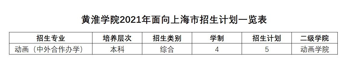 黄淮学院2021年面向上海市招生计划一览表
