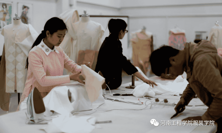 在应用型人才的培养上,坚持“产、学、研、赛、展、创”及“工作室”相结合的办学模式,重视与企业的产、学、研、用合作,以教学为中心通过工作室建设,以项目合作的形式反哺教师及学生,进一步促进工程及应用能力的提升。学院课程建设成效突出:《风格与时尚》《服装画技法3》为省级一流课程;《风格与时尚》《一件衣服的诞生》为省级精品在线开放课程;《服装设计方法与程序》为河南省首批本科高校课程思政样板课程。