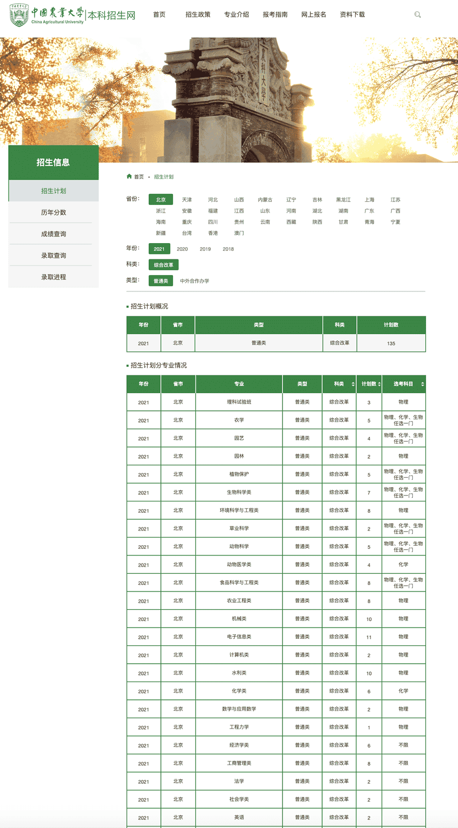 中国农业大学作为教育部直属高校,是我国现代农业高等教育的起源地,其历史起自于1905年成立的京师大学堂农科大学。1949年9月,由北京大学农学院、清华大学农学院和华北大学农学院合并为北京农业大学。1952年10月,北京农业大学农业机械系与中央农业部机耕化农业专科学校、华北农业机械专科学校、平原省农学院合并成立北京农业机械化学院,1985年10月更名为北京农业工程大学。1995年9月,北京农业大学与北京农业工程大学合并成立中国农业大学,同志亲自题写校名。现任党委书记姜沛民,校长孙其信。