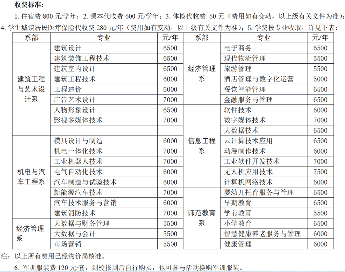 1、学费:根据不同专业,学费分为5000-7500元/年。
