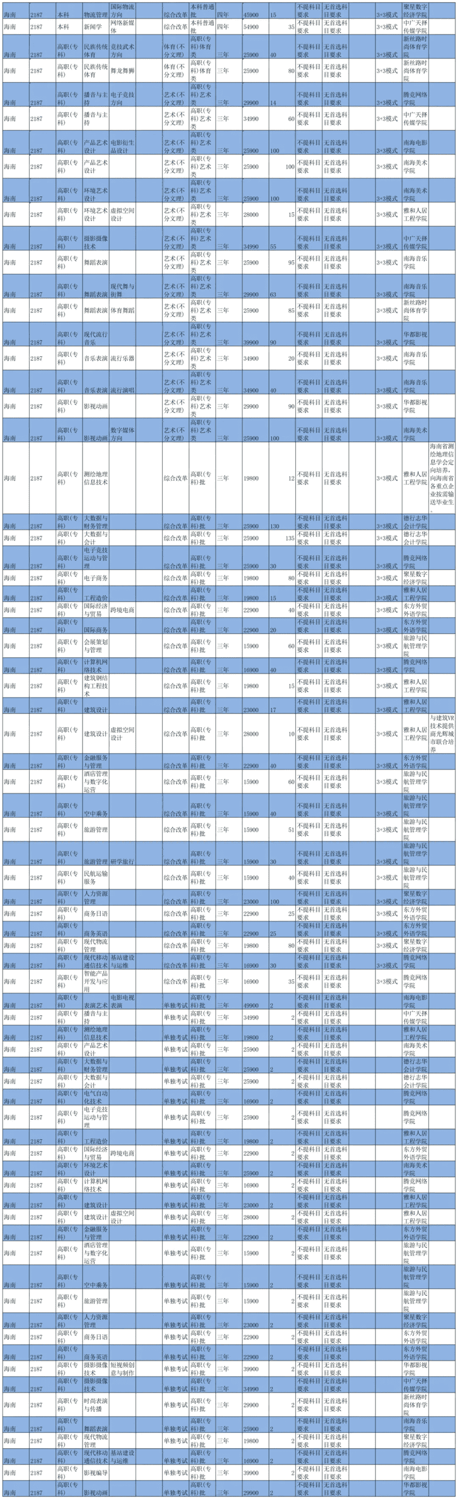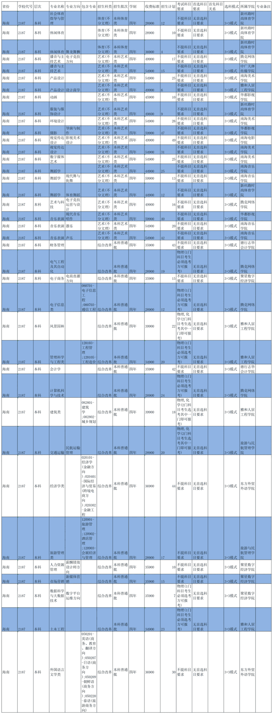 2021海口经济学院学费及各专业收费标准