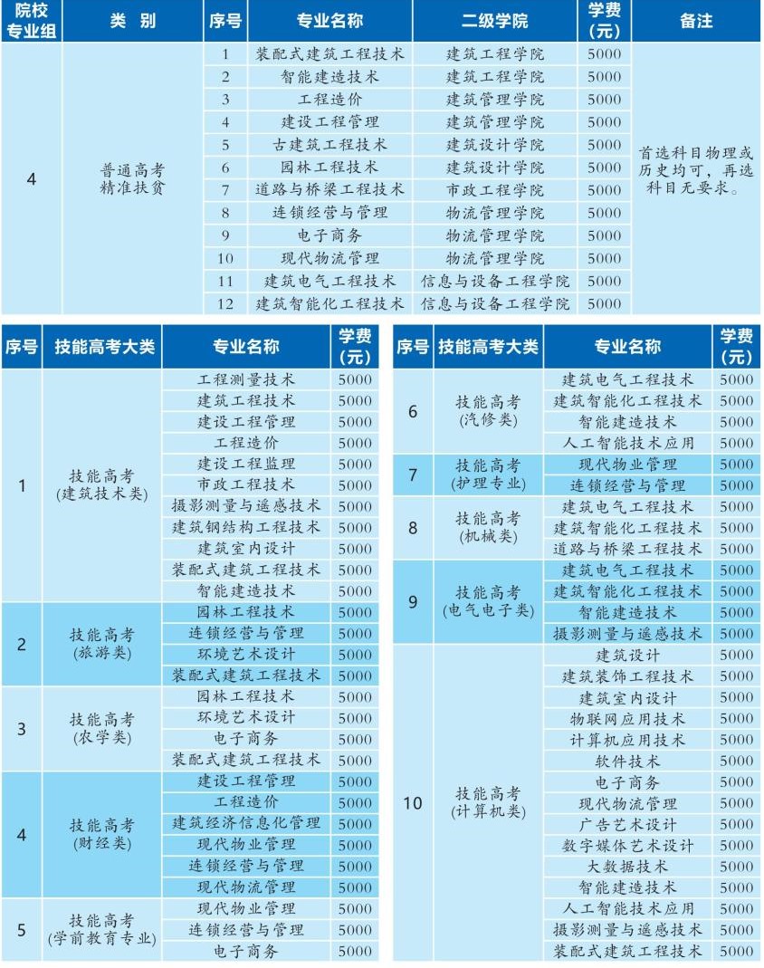 2021湖北城市建设职业技术学院学费及各专业收费标准