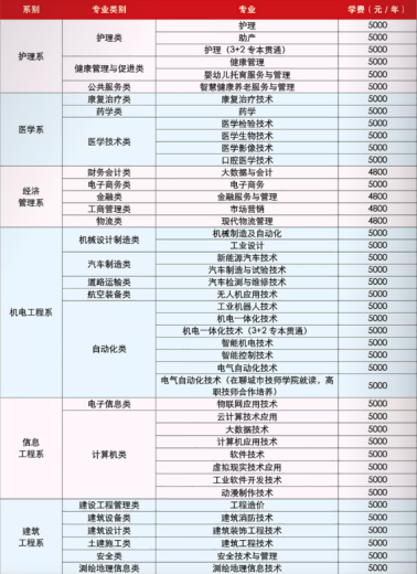 普通类大部分专业4800、5000元/年;中外合作专业9800元/年,校企合作专业8000-9800元/年。