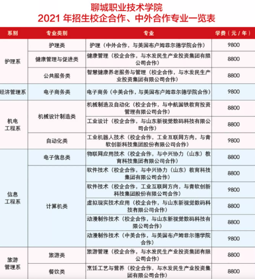 2021聊城职业技术学院招生专业一览表