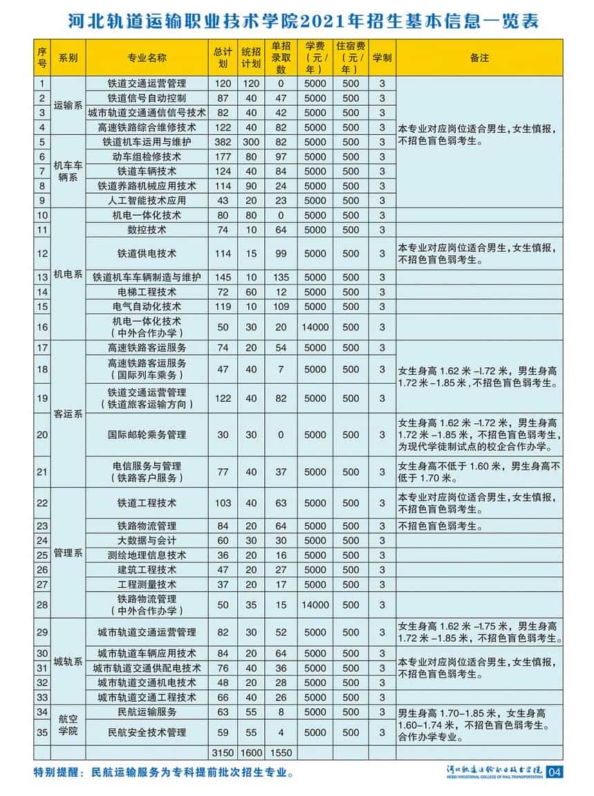 一、河北轨道运输职业技术学院收费项目及收费标准2021河北轨道运输职业技术学院收费标准: