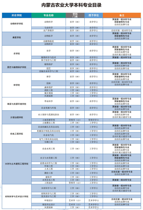 2、内蒙古农业大学简介内蒙古农业大学位于呼和浩特市,是内蒙古自治区重点大学,是教育部2001年“十五”期间西部重点建设十四所高校之一,国家首批32个大学生文化素质教育基地之一,国家林业局和自治区人民政府合作共建高校,国家“中西部高校基础能力建设工程”高校,国家建设高水平大学公派研究生项目高校、国家“特色重点学科项目”建设高校,“卓越农林人才教育培养计划”试点高校,中国政府奖学金来华留学生接收院校。由中国农业大学对口支援内蒙古农业大学。