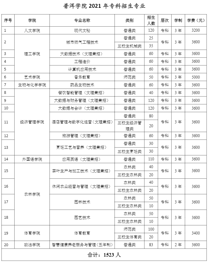 1、普洱学院收费项目及收费标准2021年普洱学院学费收费标准