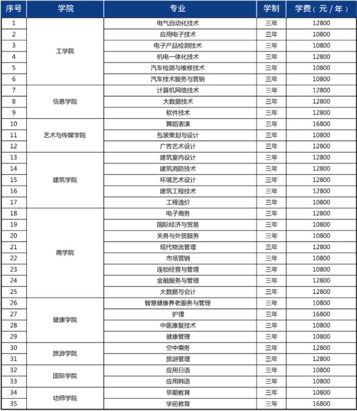 学费标准:本科24800-27800元/年;专科10800-16800元/年;详情如下: