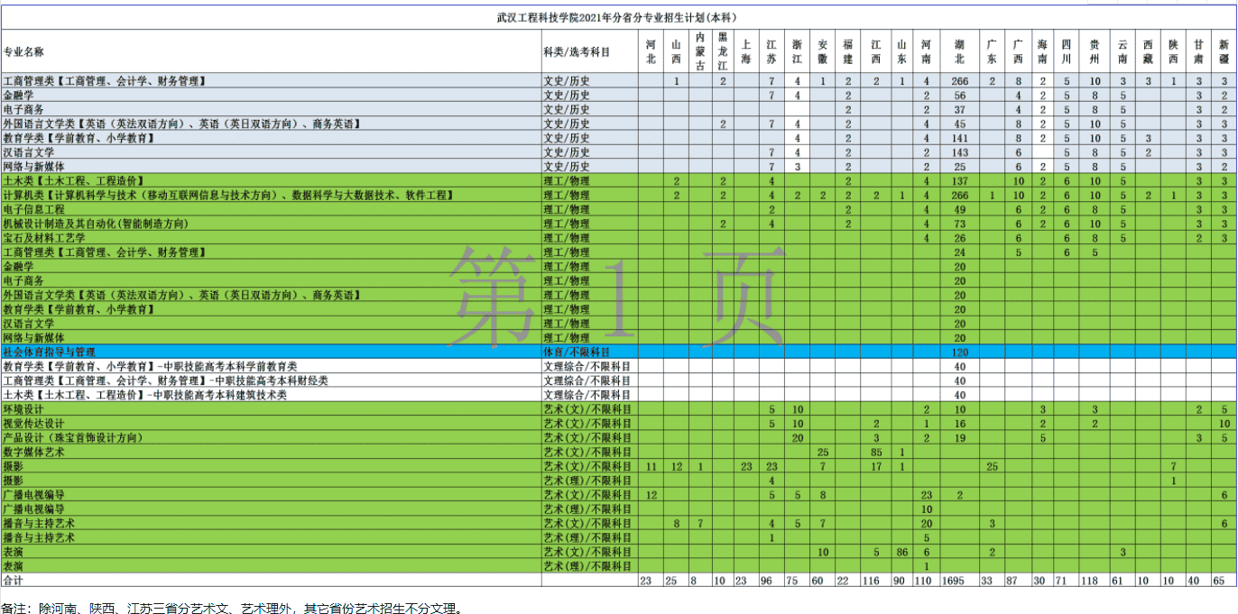 2021年武汉工程科技学院招生计划已经公布,以下是湖北省及全国各专业招生人数,这是填报志愿时非常重要的参考数据,供大家参考,如有变动,以学校官方公布为准: