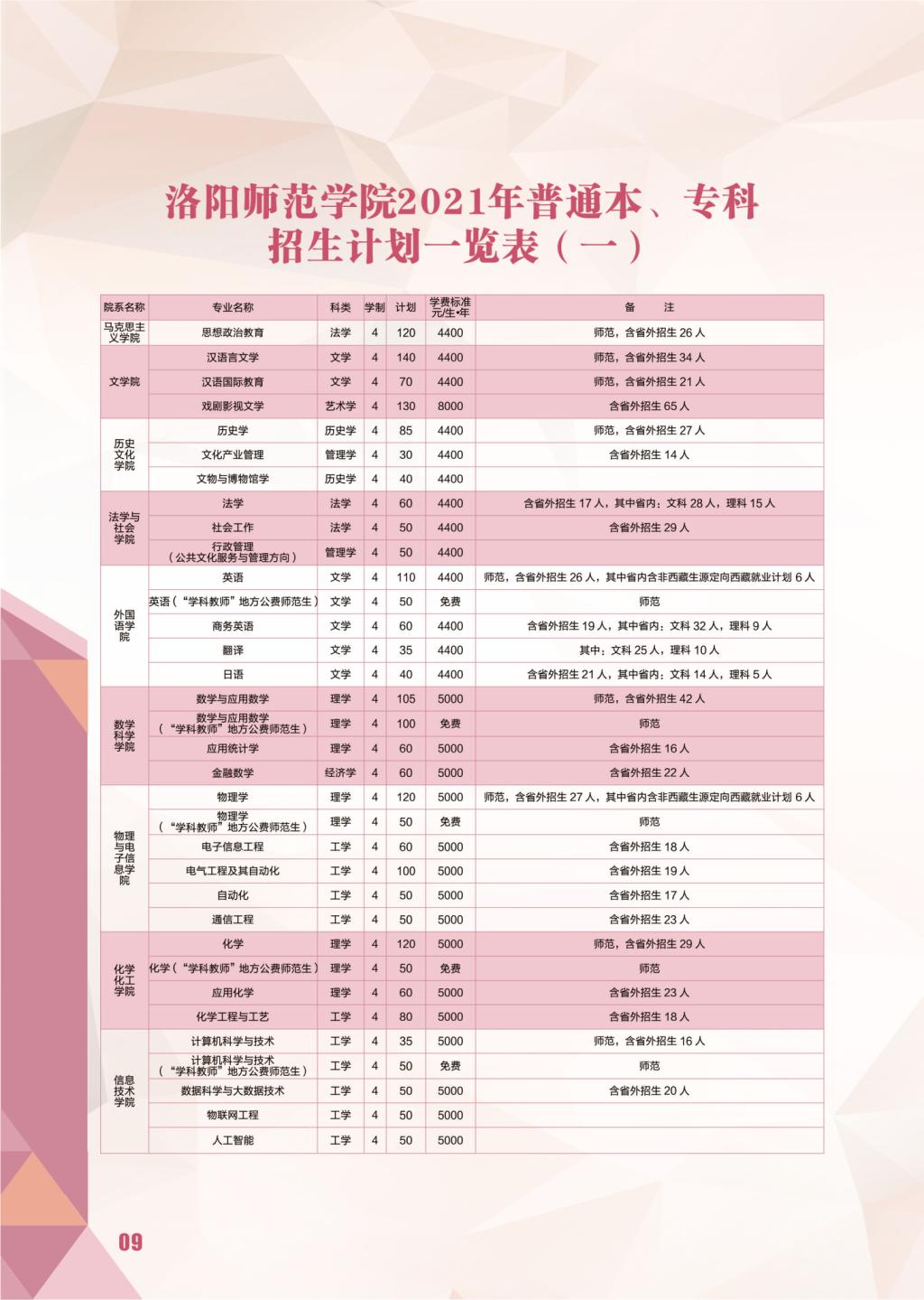 2021年洛阳师范学院招生计划已经公布,以下是河南省及全国各专业招生人数,这是填报志愿时非常重要的参考数据,供大家参考,如有变动,以学校官方公布为准: