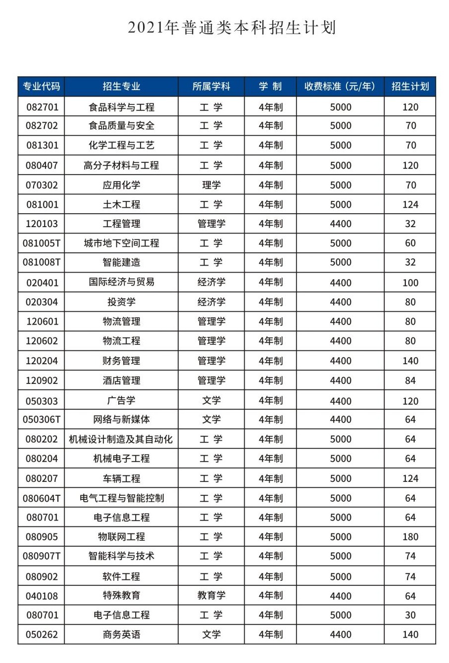 2021年郑州工程技术学院招生计划-各专业招生人数是多少