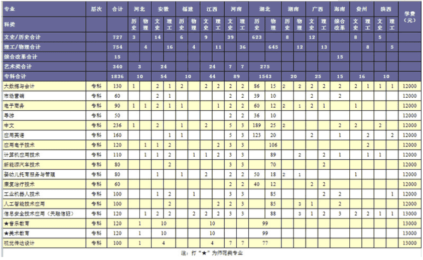 2021专科招生计划一览表