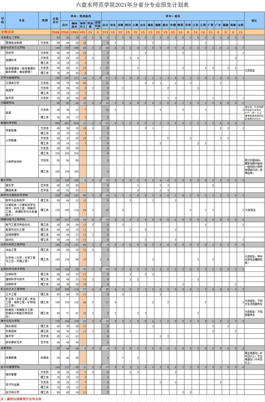 2021年六盘水师范学院招生计划已经公布,以下是贵州省及全国各专业招生人数,这是填报志愿时非常重要的参考数据,供大家参考,如有变动,以学校官方公布为准: