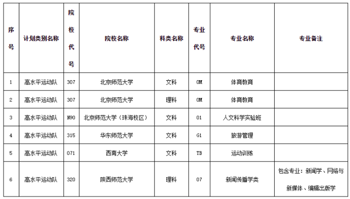 内蒙古2021年本科提前A批高水平运动队招生高校及专业