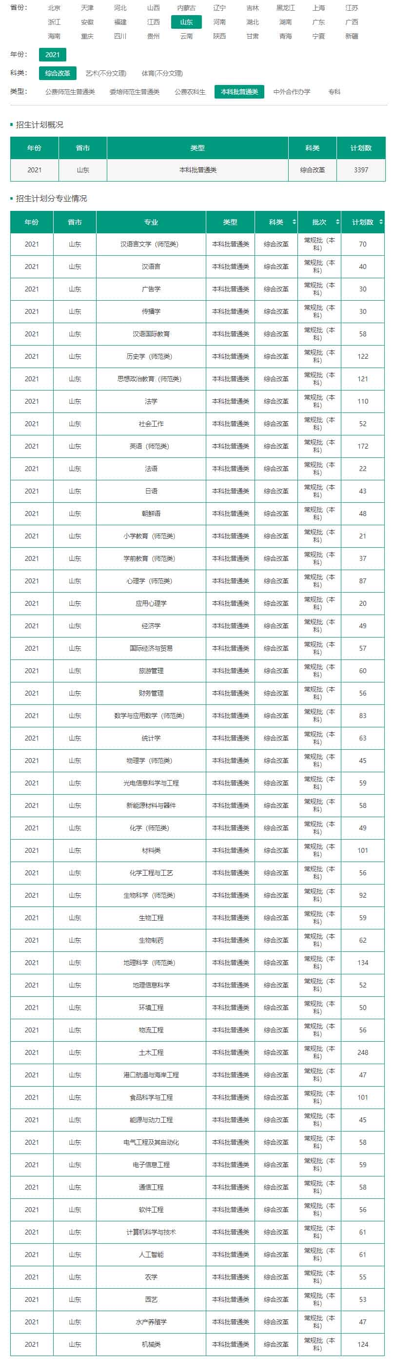 鲁东大学2021年招生计划(山东 综合改革 本科批普通类)