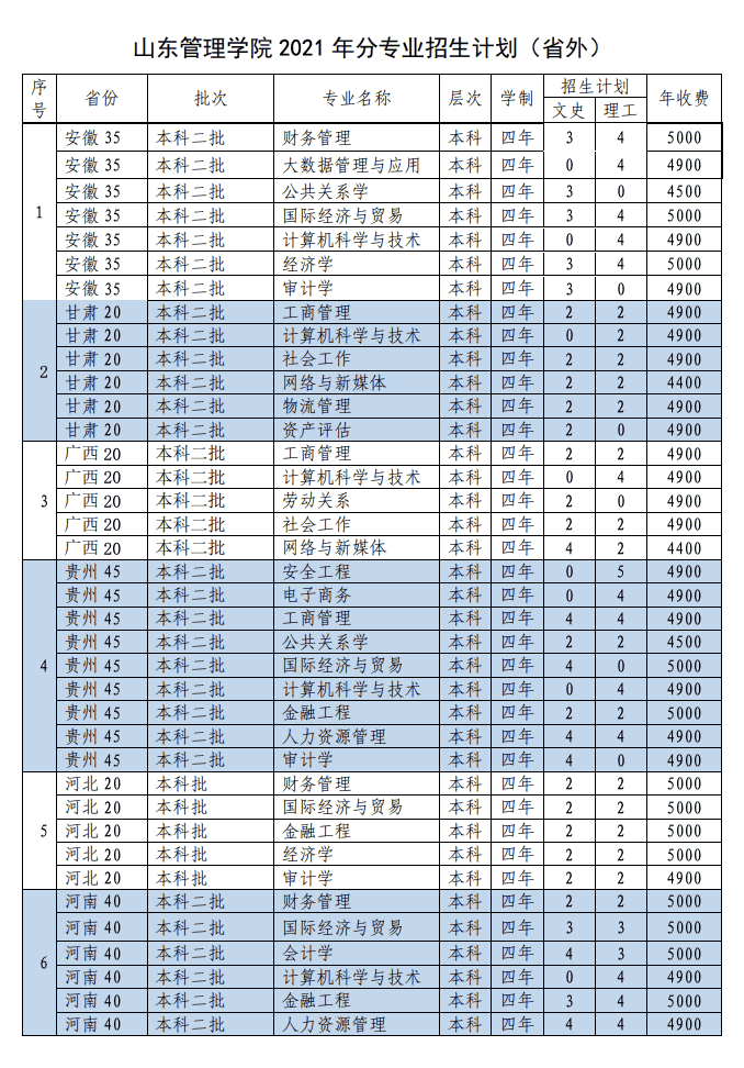 2024山东财经大学燕山学院招生计划及各专业招生人数
