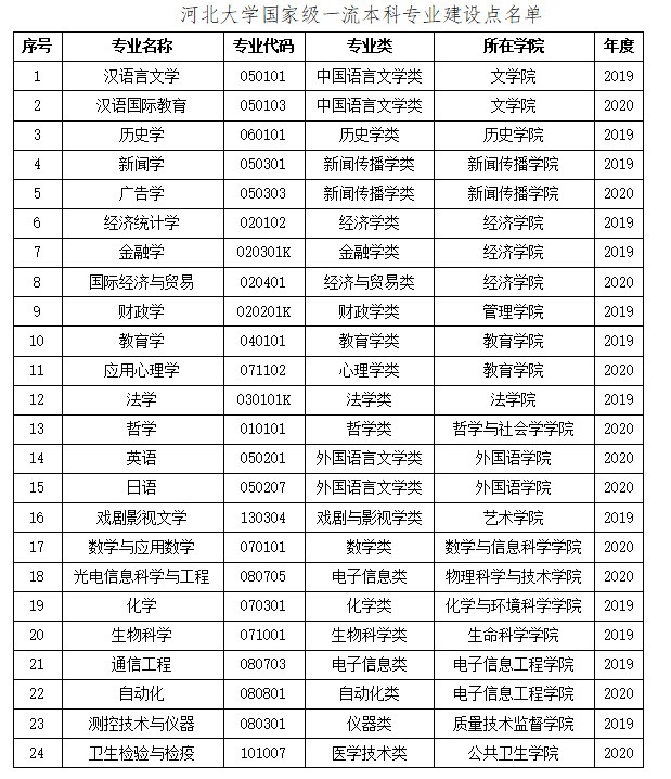 | 1 | 10075 | 河北大学 | 中国语言文学 | B |