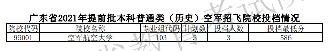2021广东本科提前批空军招飞院校投档分数线(历史)