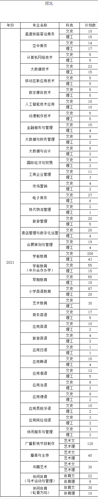 2021年河北对外经贸职业学院招生计划已经公布,以下是河北省各专业招生人数,这是填报志愿时非常重要的参考数据,供大家参考,如有变动,以学校官方公布为准: