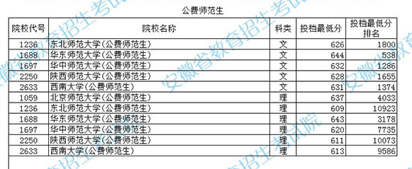 小编根据部分省份教育考试院公布的2021年提前批招录情况,为大家整理出了6所公费师范大学分数线情况,供大家参考: