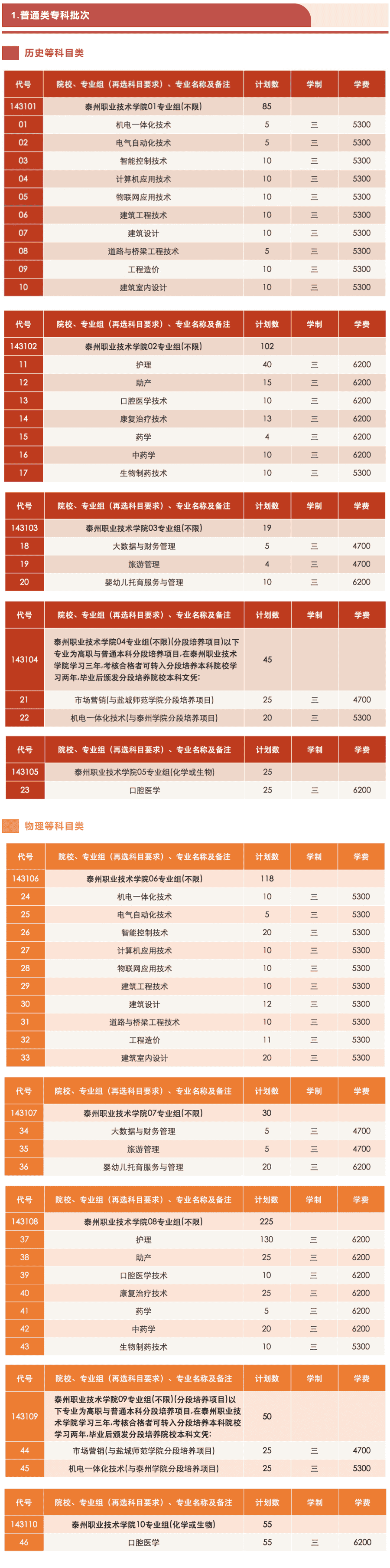 2021年泰州职业技术学院招生计划已经公布,以下是江苏省各专业招生人数,这是填报志愿时非常重要的参考数据,供大家参考,如有变动,以学校官方公布为准: