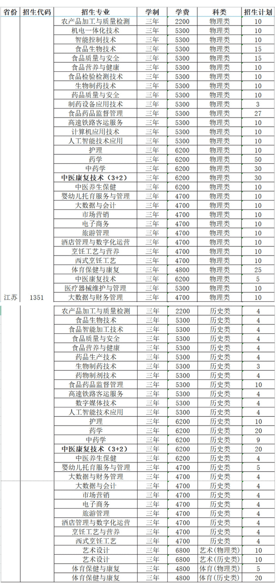 2021年江苏食品药品职业技术学院招生计划-各专业招生人数