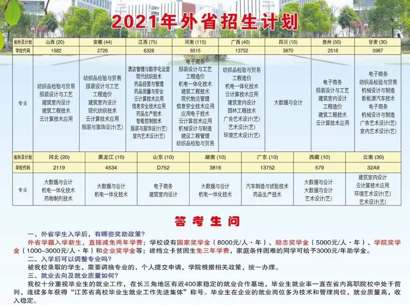 2021年盐城工业职业技术学院招生计划已经公布,以下是全国各专业招生人数,这是填报志愿时非常重要的参考数据,供大家参考,如有变动,以学校官方公布为准: