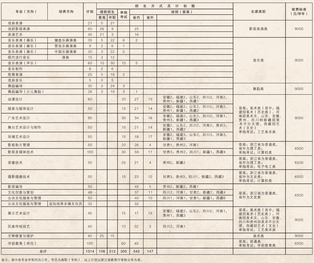 2021年浙江艺术职业学院招生计划已经公布,以下是浙江省及全国各专业招生人数,这是填报志愿时非常重要的参考数据,供大家参考,如有变动,以学校官方公布为准:
