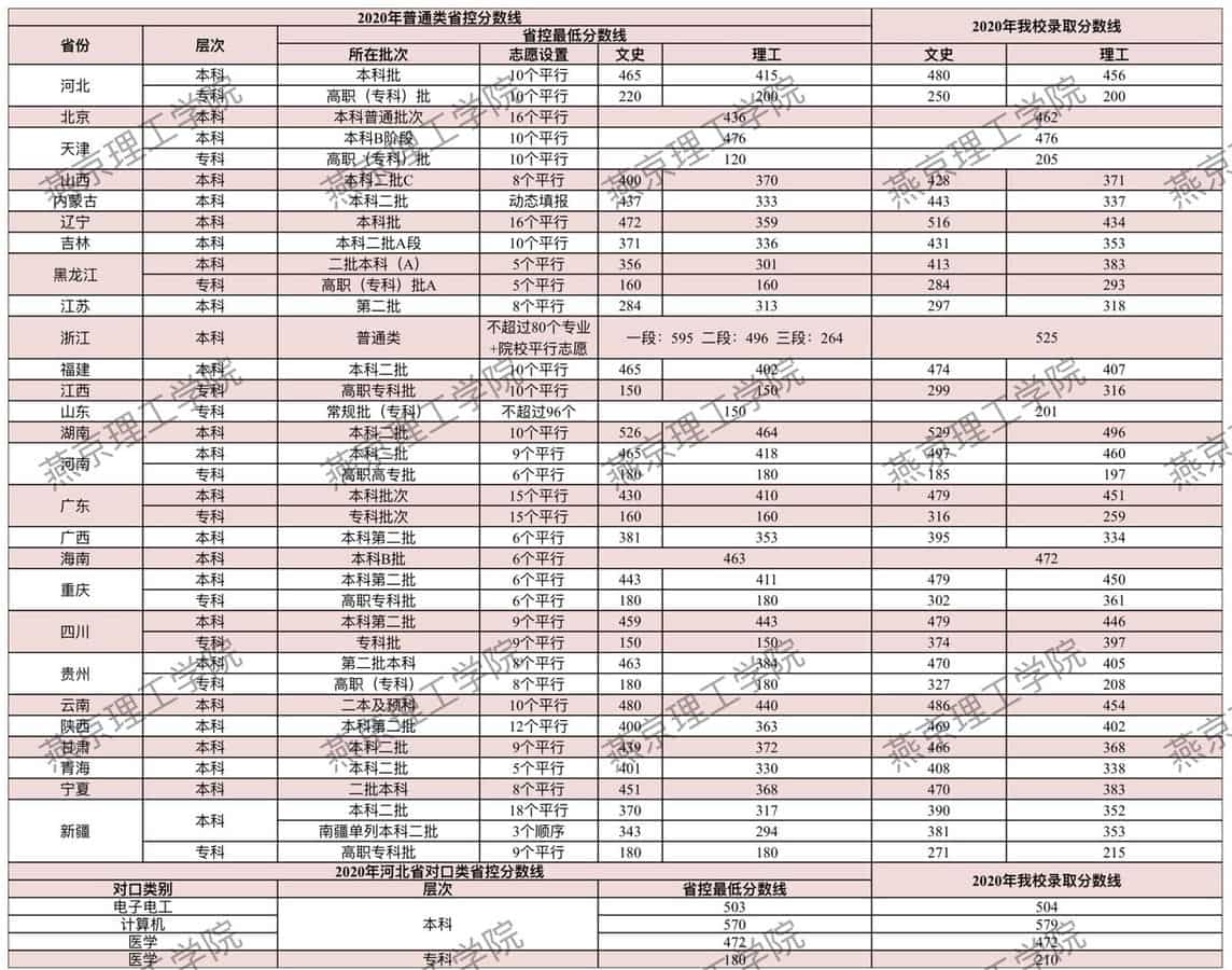 4、2020年燕京理工学院录取分数线2020年燕京理工学院各省普通类录取分数线