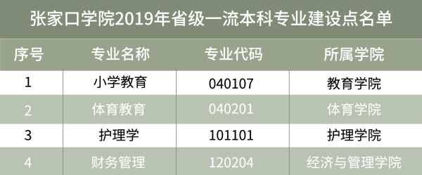 2019年度张家口学院省级一流本科专业建设点名单