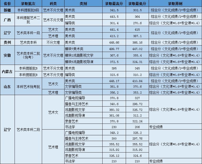 | 戏剧影视文学(文/理) | 300.9 | 257/253(校) | 310.2 | 355.4 | ||||||||||||