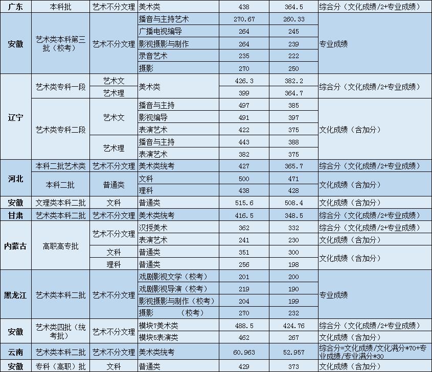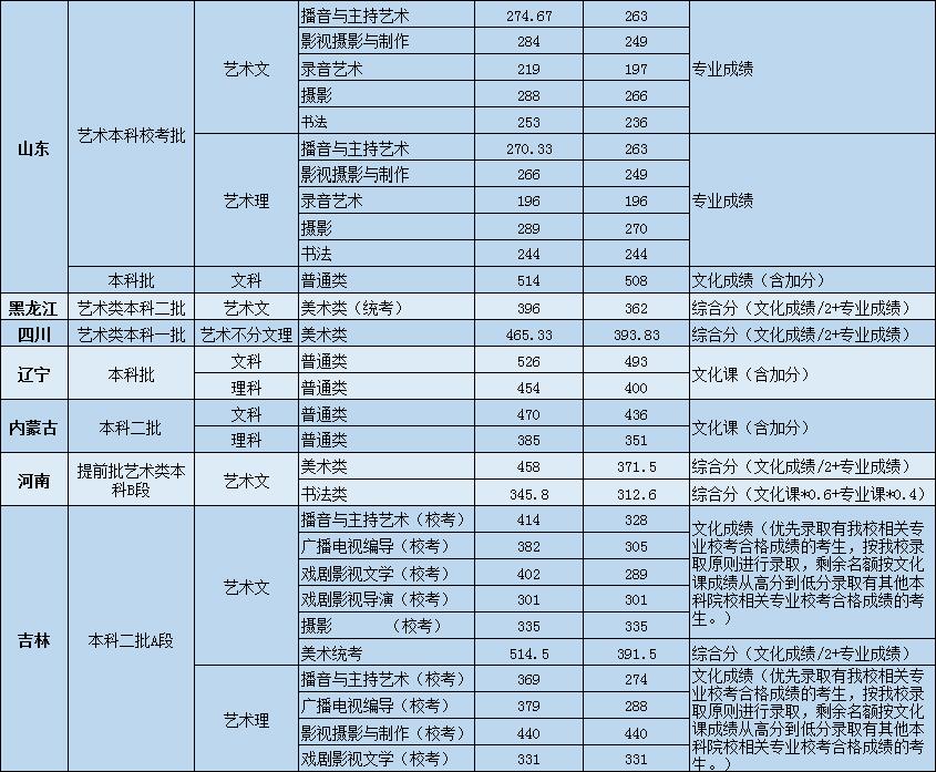 | 录音艺术(文/理) | 279 | 222(校) | 197/196(校) | |||||||||||||
