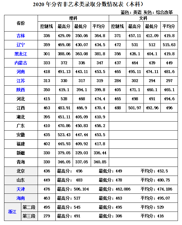 | 省份 | 理科 | 文科 | ||||