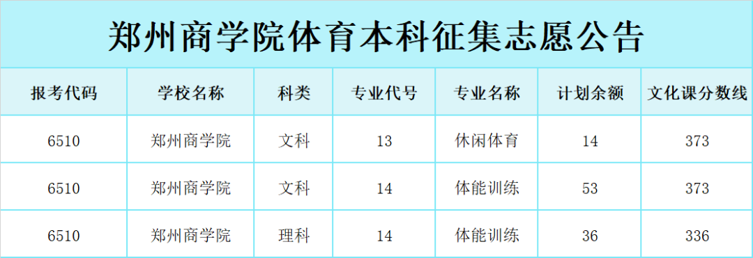 征集志愿 |郑州商学院2021年体育本科征集志愿公告!