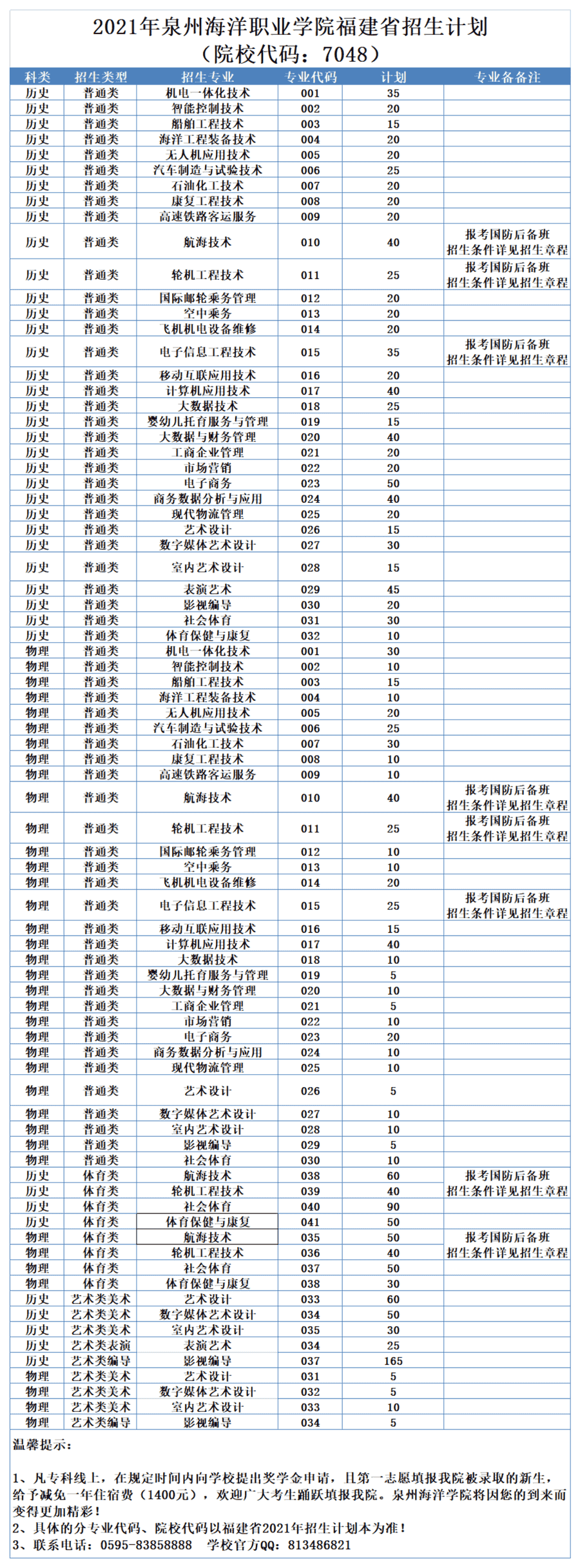 2021年泉州海洋职业学院招生计划已经公布,以下是福建省各专业招生人数,这是填报志愿时非常重要的参考数据,供大家参考,如有变动,以学校官方公布为准: