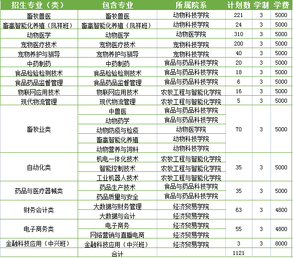 2021山东畜牧兽医职业学院招生计划-各专业招生人数