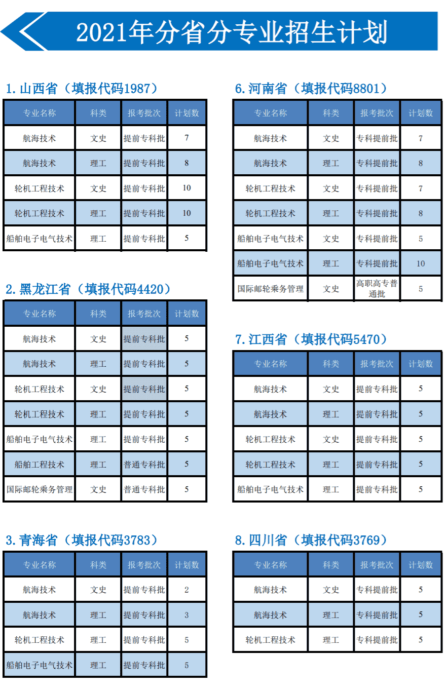 2021年青岛远洋船员职业学院招生计划已经公布,以下是山东省及全国各专业招生人数,这是填报志愿时非常重要的参考数据,供大家参考,如有变动,以学校官方公布为准: