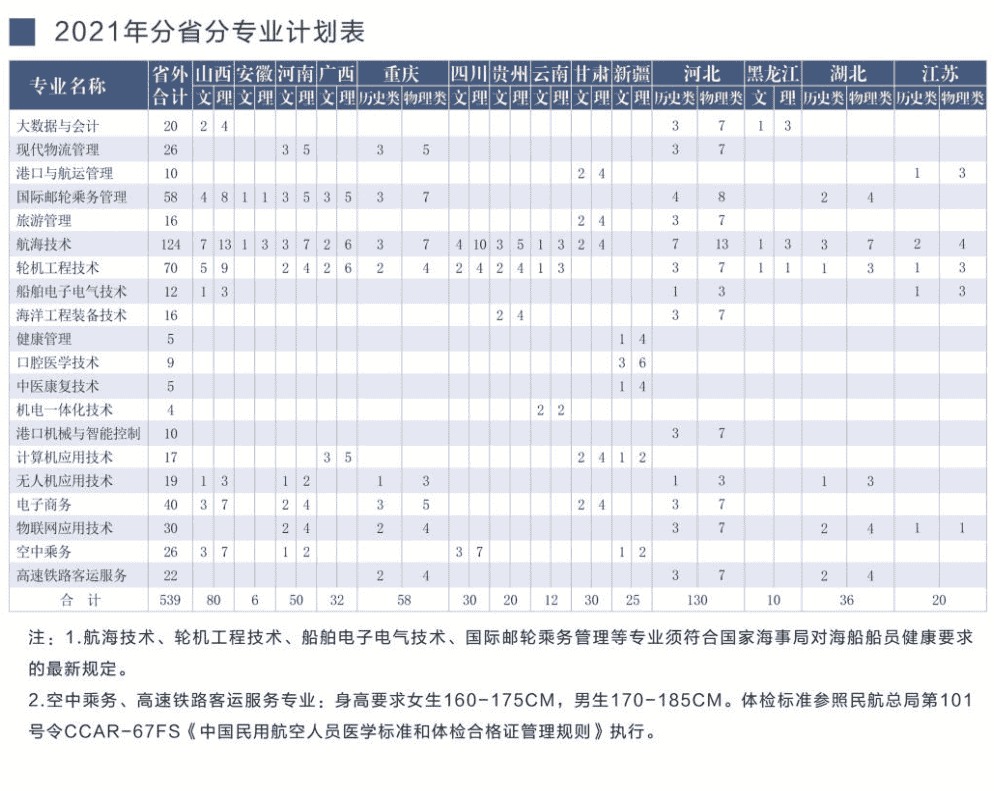 2021年山东海事职业学院招生计划已经公布,以下是山东省及全国各专业招生人数,这是填报志愿时非常重要的参考数据,供大家参考,如有变动,以学校官方公布为准: