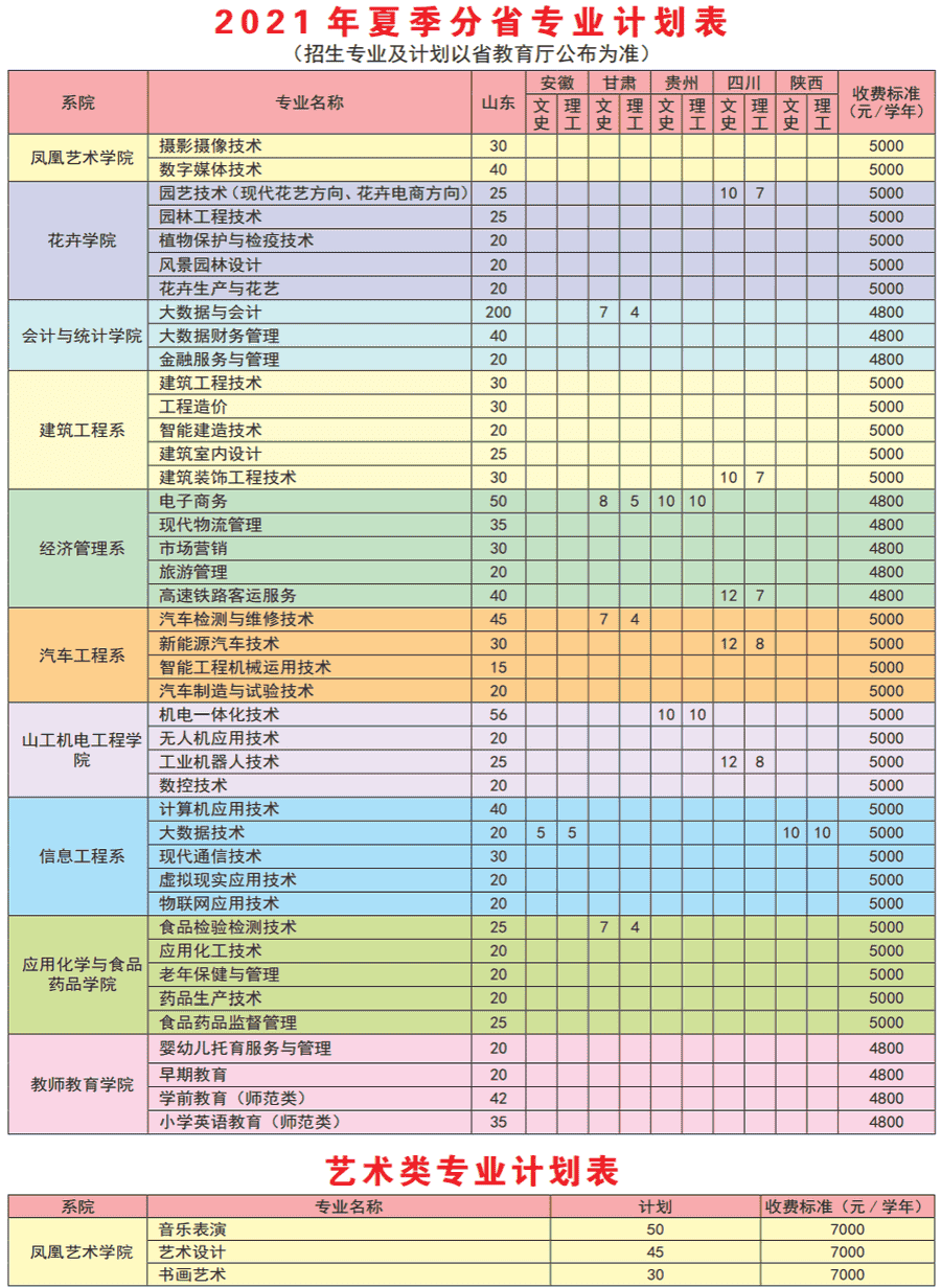 2021年潍坊工程职业学院招生计划已经公布,以下是山东省及全国各专业招生人数,这是填报志愿时非常重要的参考数据,供大家参考,如有变动,以学校官方公布为准:
