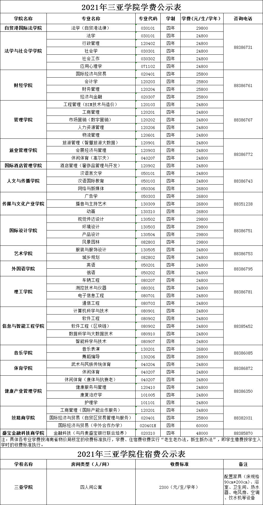 2021年三亚学院学费是多少 各专业收费标准一览
