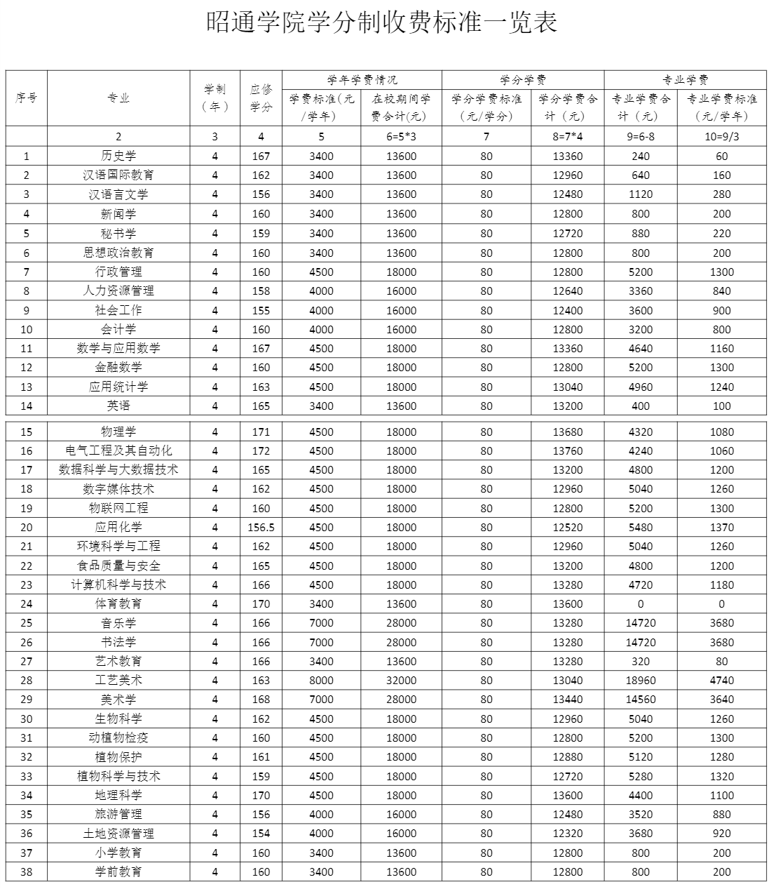 2021年昭通学院学费是多少 各专业收费标准一览