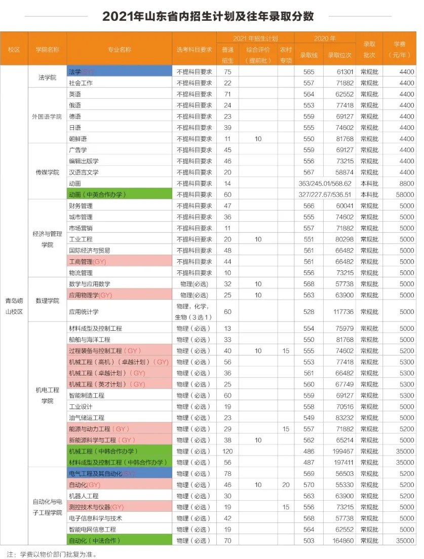 本科:普通类专业学费:4400-5300元/年;艺术类专业学费:8800元/年;校企合作专业学费:10400元/年(其中,高密校区:国际经济与贸易8800元/年);中韩、中法、中美合作专业学费:28000元/年;中德合作专业学费:40000元/年;地方专项类专业学费5000-5300元/年。