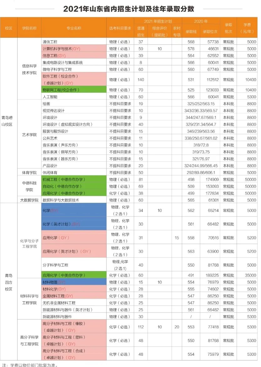 2021青岛科技大学学费 各专业每年多少钱