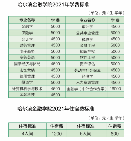 2021年哈尔滨金融学院学费是多少 各专业收费标准一览