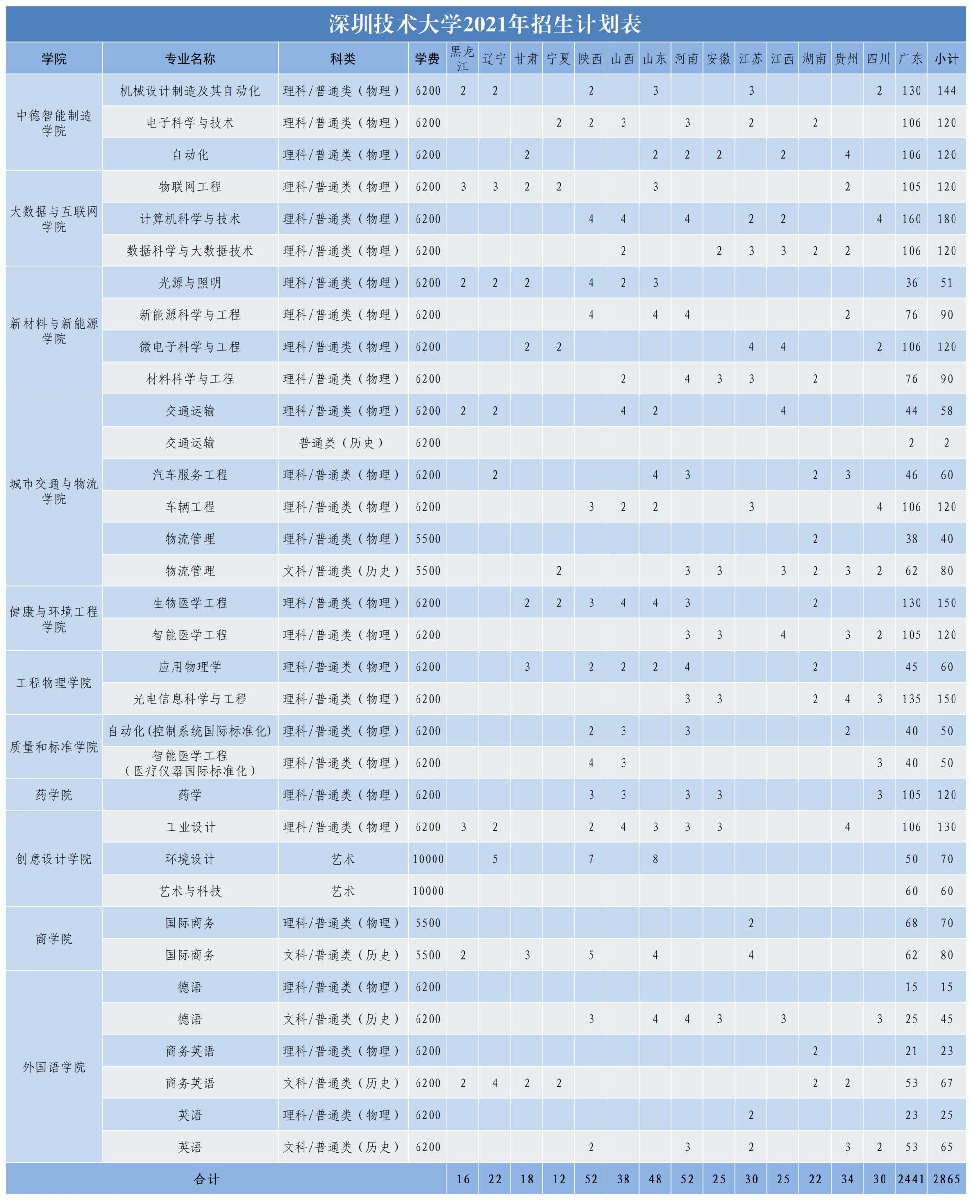 2021深圳技术大学学费 各专业每年多少钱