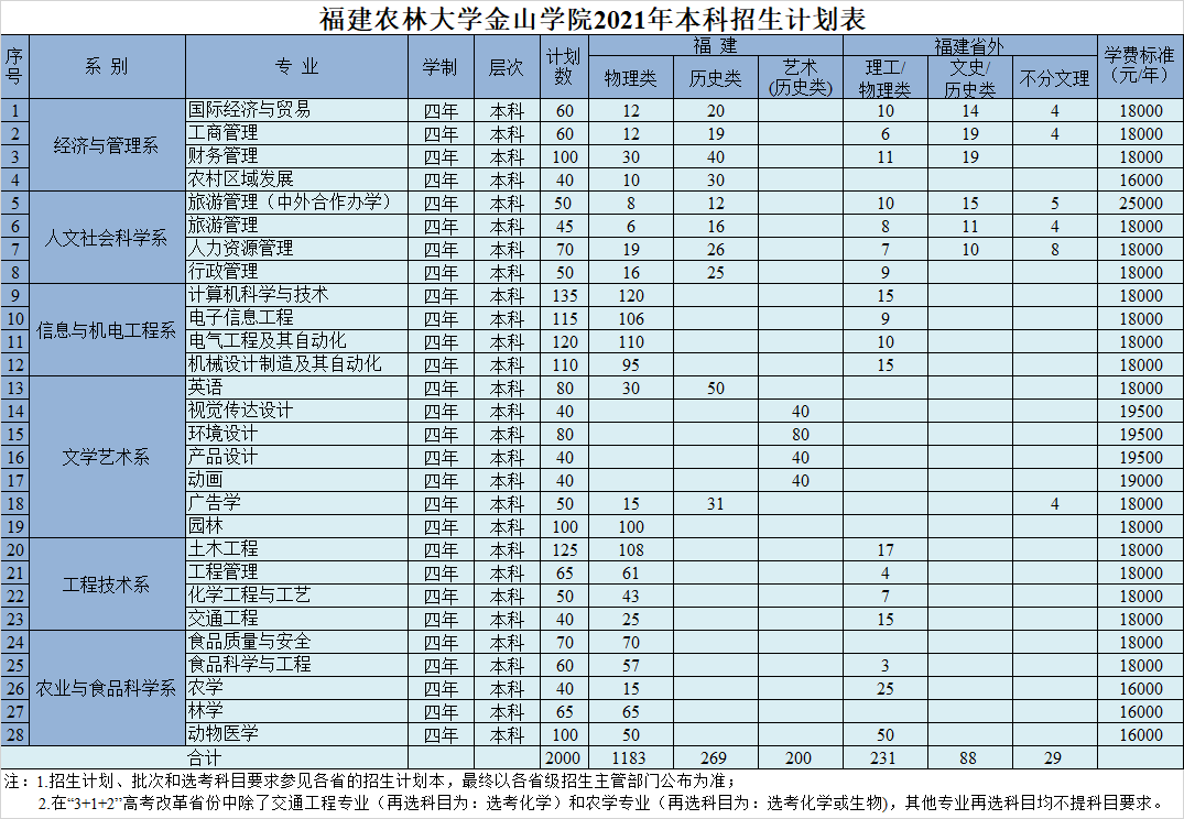 2021年福建农林大学金山学院学费是多少 各专业收费标准