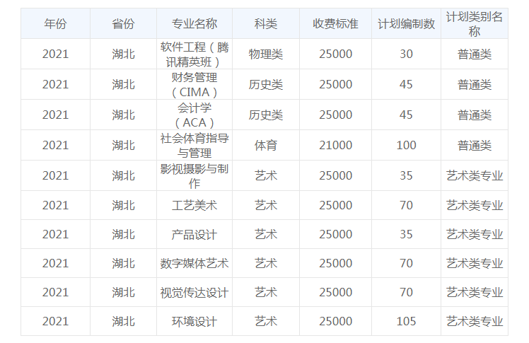 2021年武汉学院学费是多少 各专业收费标准一览