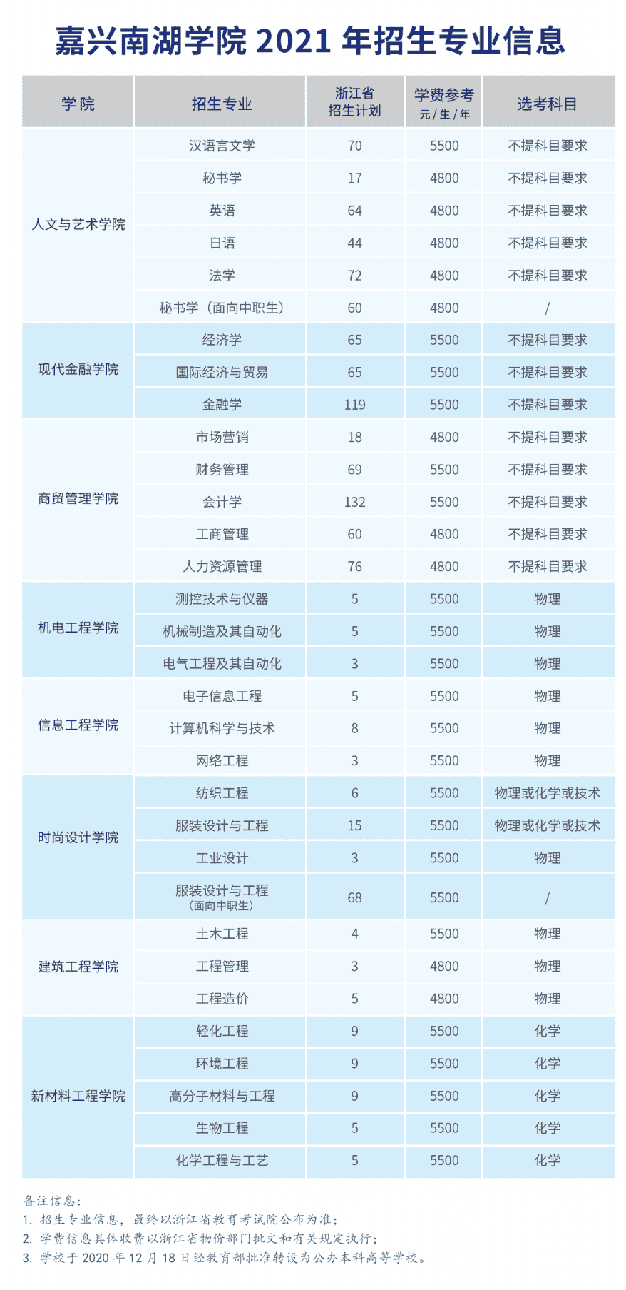 2021年嘉兴南湖学院学费:普通类:4800-5500元/每年。