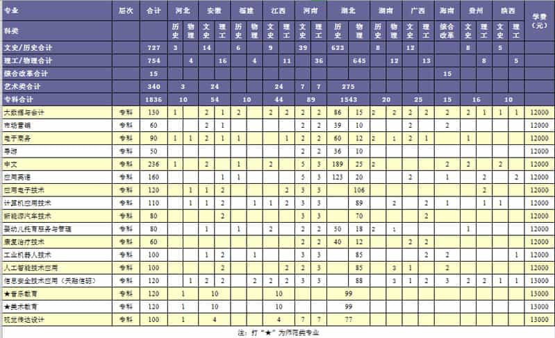 学校设有人文学部、经济与管理学部、理工学部、教育与艺术学部、公共基础课部(马克思主义课部)等5个学部,现有普通全日制在校学生9600余人。开办有32个本科专业和20个专科专业,基本形成“以师范教育类为基础,以电子信息类和现代管理服务类为支撑,文、商、工、管、艺多学科协调发展”的学科专业布局,教师教育类、电子信息类、现代管理服务类专业群是学校重点建设专业群。其中,电子信息工程专业和英语专业获批湖北省本科一流专业建设点。